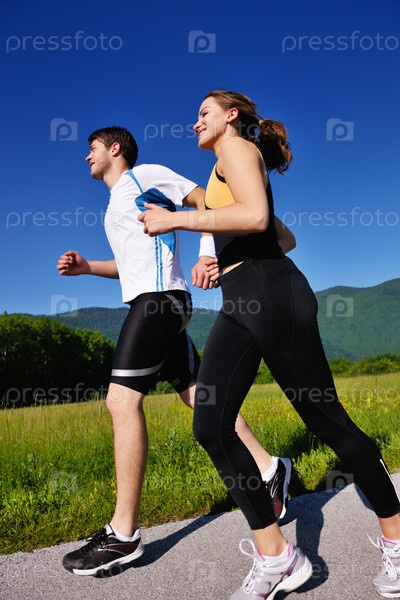Молодая пара бегает трусцой