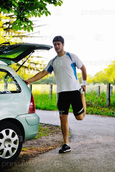Мужчина делает растяжку после бега