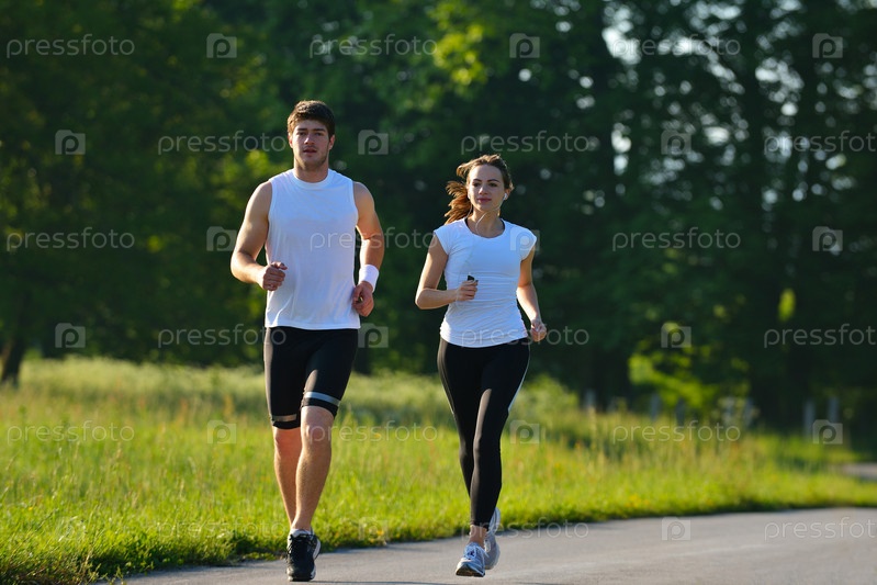Молодая пара бегает трусцой
