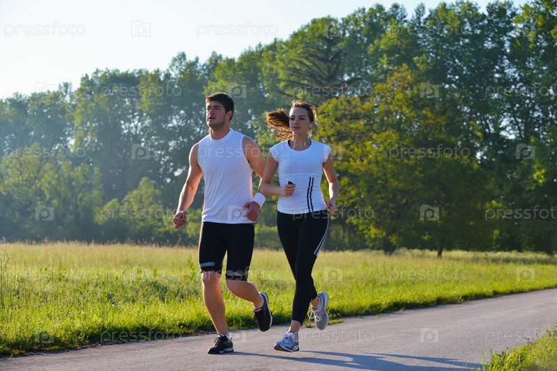 Молодая пара бегает трусцой