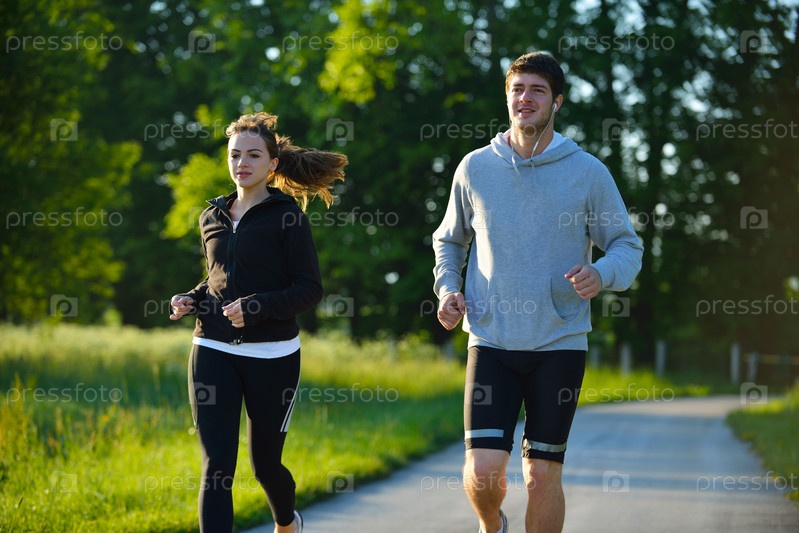 Молодая пара бегает трусцой