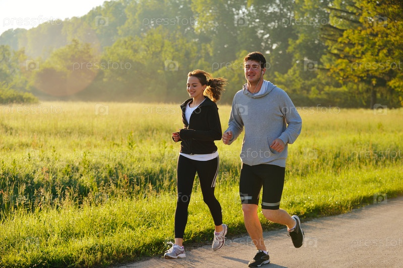 Молодая пара бегает трусцой
