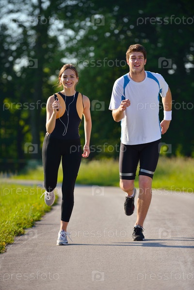 Молодая пара бегает трусцой