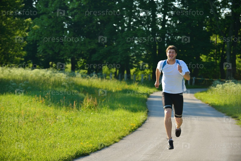 Молодой мужчина бегает трусцой