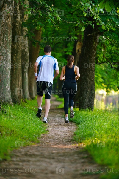 Молодая пара бегает трусцой