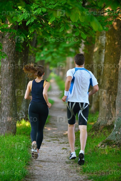 Молодая пара бегает трусцой