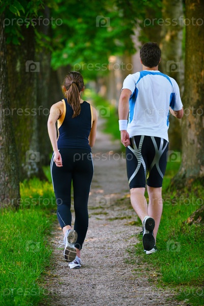 Молодая пара бегает трусцой