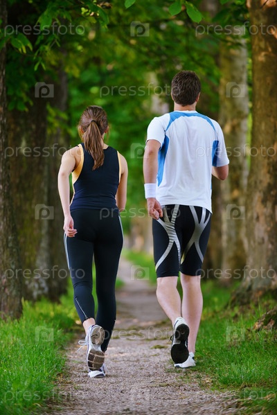 Молодая пара бегает трусцой