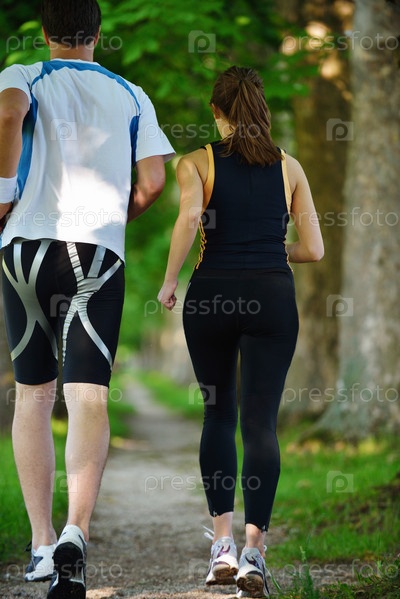 Молодая пара бегает трусцой