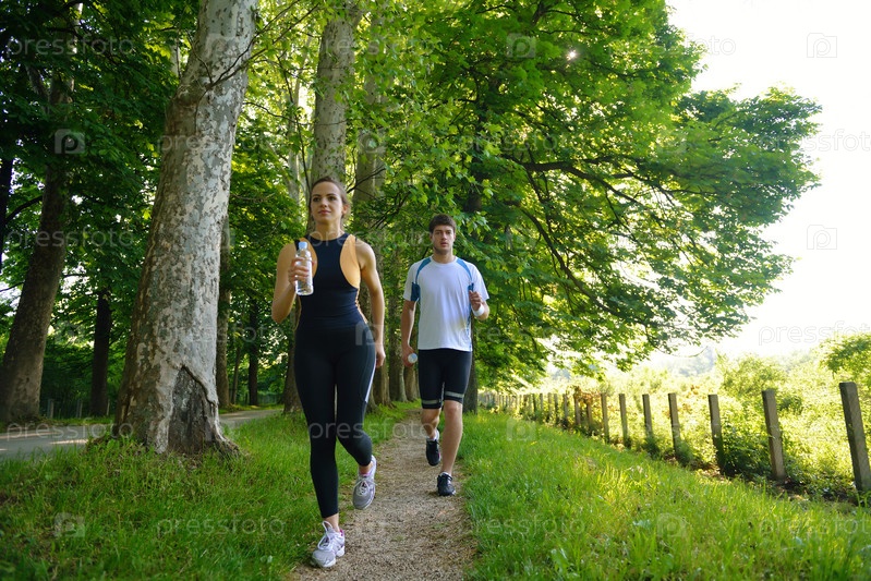 Молодая пара бегает трусцой