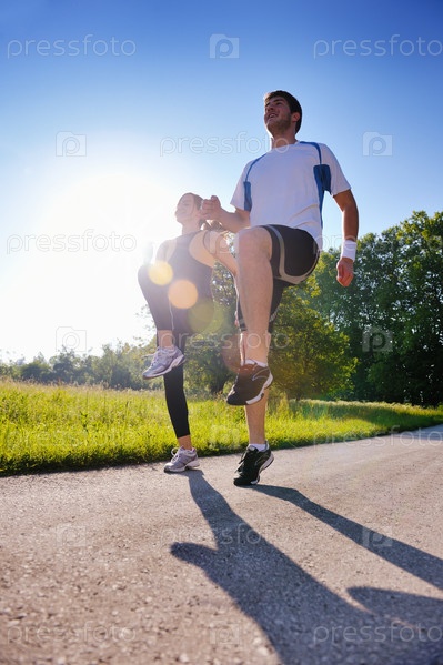 Молодая пара бегает трусцой