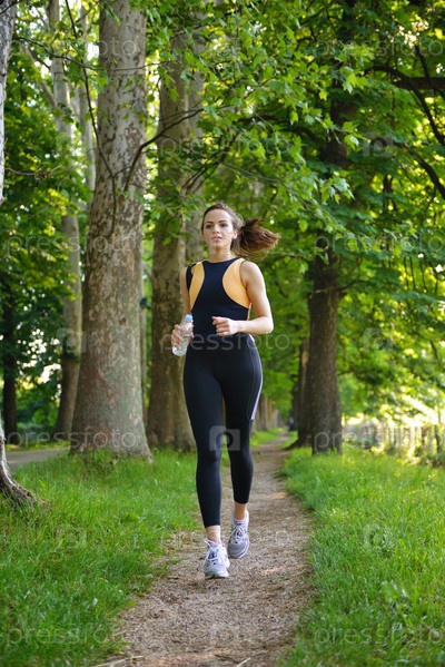 Молодая красивая женщина бегает трусцой