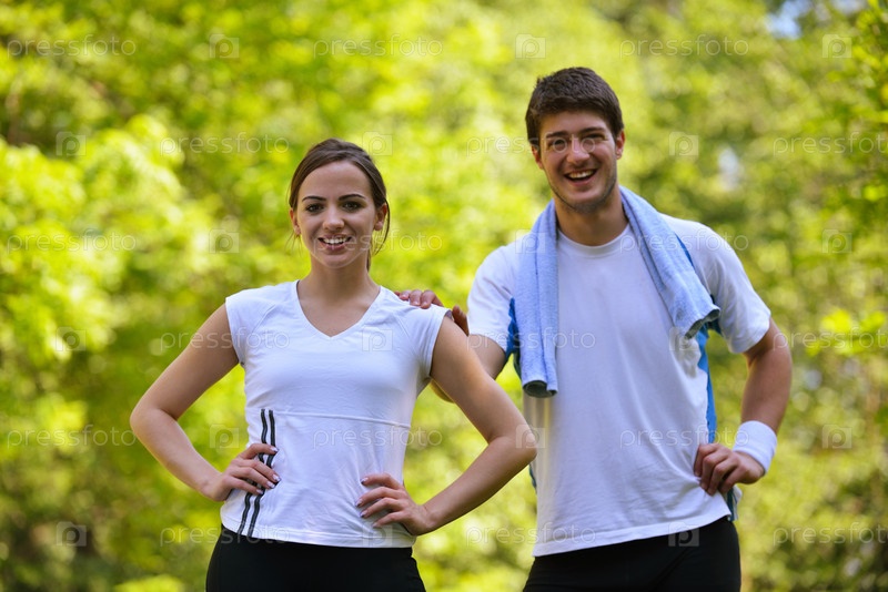 Молодая пара бегает трусцой
