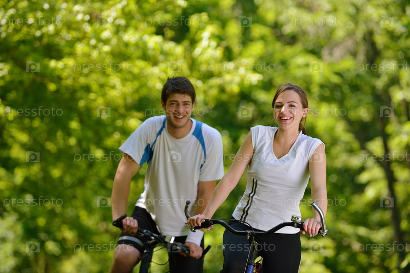 Молодая пара катается на велосипедах