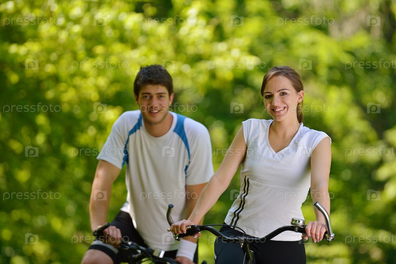 Молодая пара катается на велосипедах