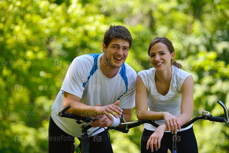 Молодая пара катается на велосипедах