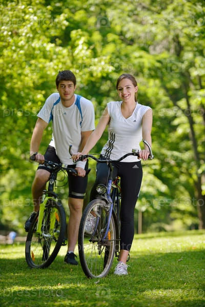 Молодая пара катается на велосипедах