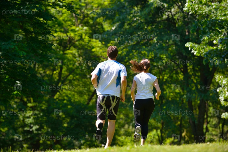 Молодая пара бегает трусцой