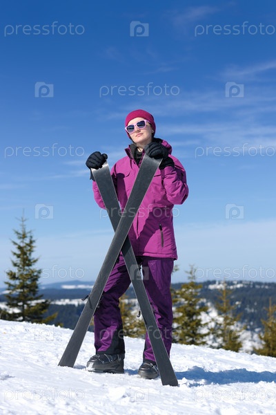 Женщина на зимнем горнолыжном курорте