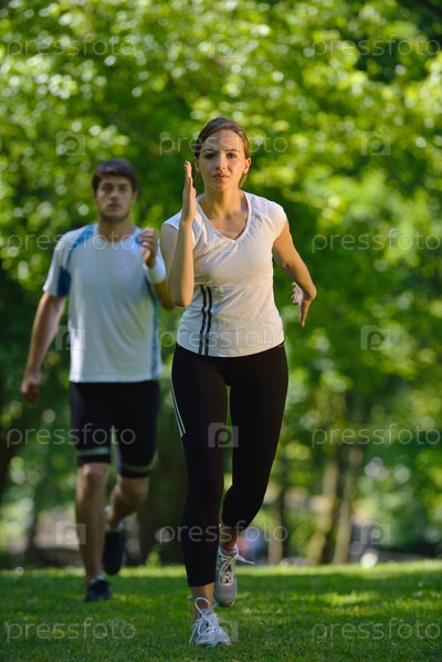 Молодая пара бегает трусцой