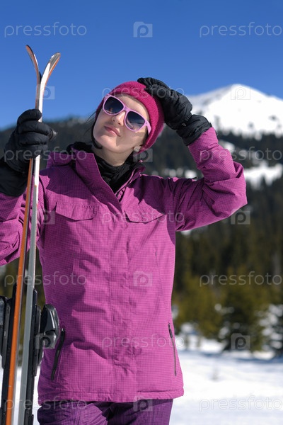 Женщина на зимнем горнолыжном курорте