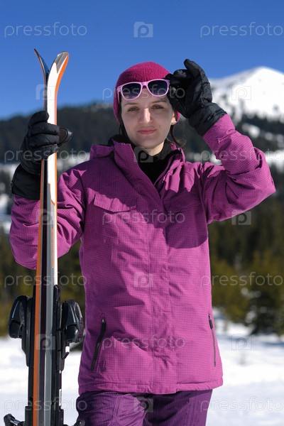 Женщина на зимнем горнолыжном курорте