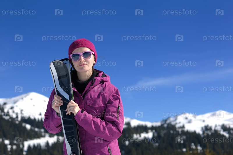 Женщина на зимнем горнолыжном курорте