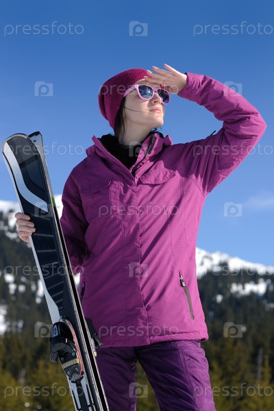 Женщина на зимнем горнолыжном курорте