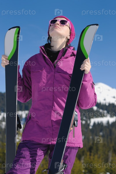 Женщина с лыжами зимой