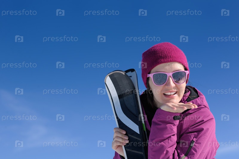 Женщина на зимнем горнолыжном курорте