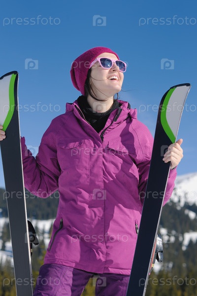Женщина с лыжами зимой