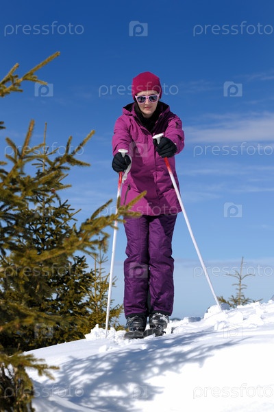 Женщина на зимнем горнолыжном курорте