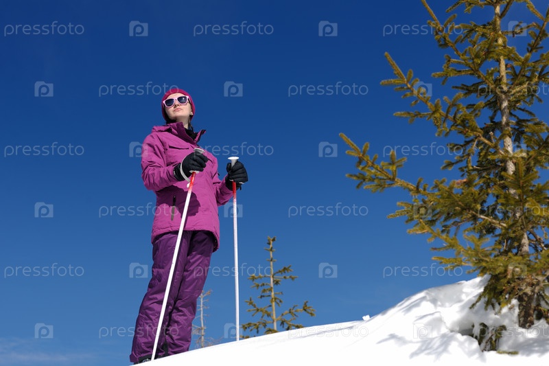 Женщина с лыжами зимой