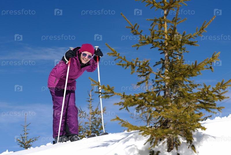 Женщина с лыжами зимой