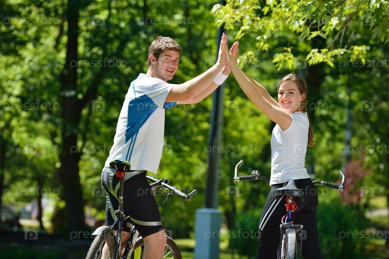 Счастливая пара велосипедов на открытом воздухе