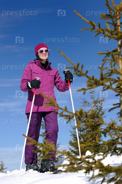 Женщина на зимнем горнолыжном курорте