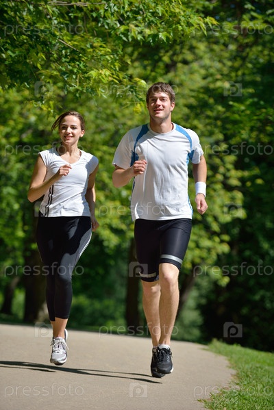 Молодая пара на утренней пробежке
