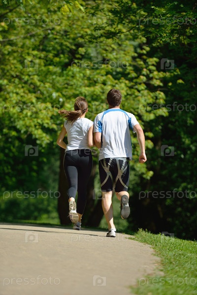 Молодая пара на утренней пробежке