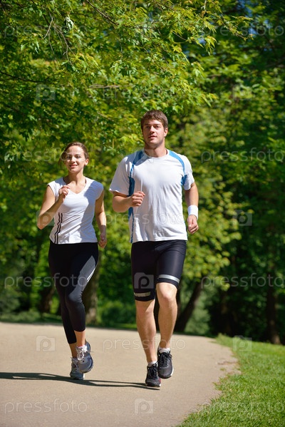Молодая пара на утренней пробежке