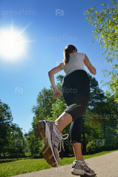 Молодая красивая женщина на утренней пробежке в парке