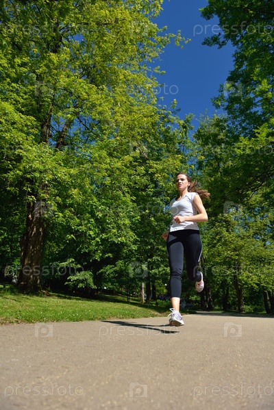 Молодая красивая женщина на утренней пробежке в парке