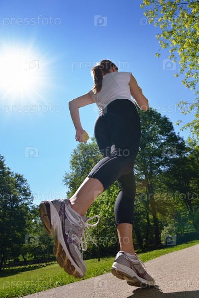 Молодая красивая женщина на утренней пробежке в парке