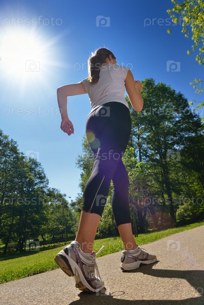 Молодая красивая женщина на утренней пробежке в парке