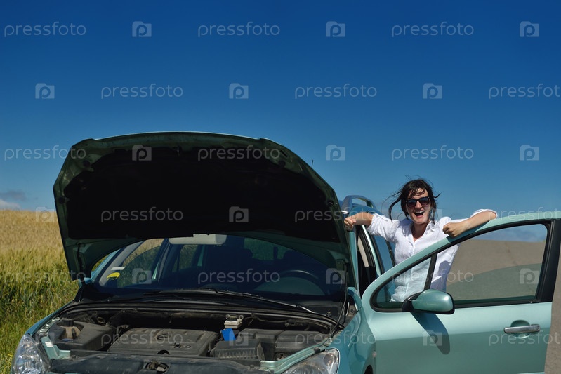 Женщина со сломанным автомобилем