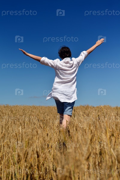Молодая женщина на летнем пшеничном поле