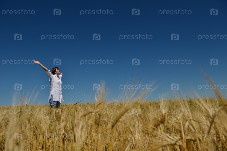 Молодая женщина на летнем пшеничном поле