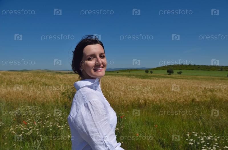 Молодая женщина на летнем пшеничном поле