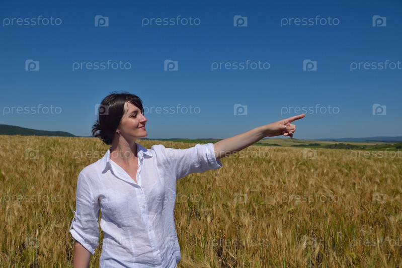 Молодая женщина на летнем пшеничном поле