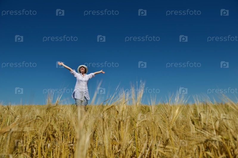 Молодая женщина на пшеничном поле летом
