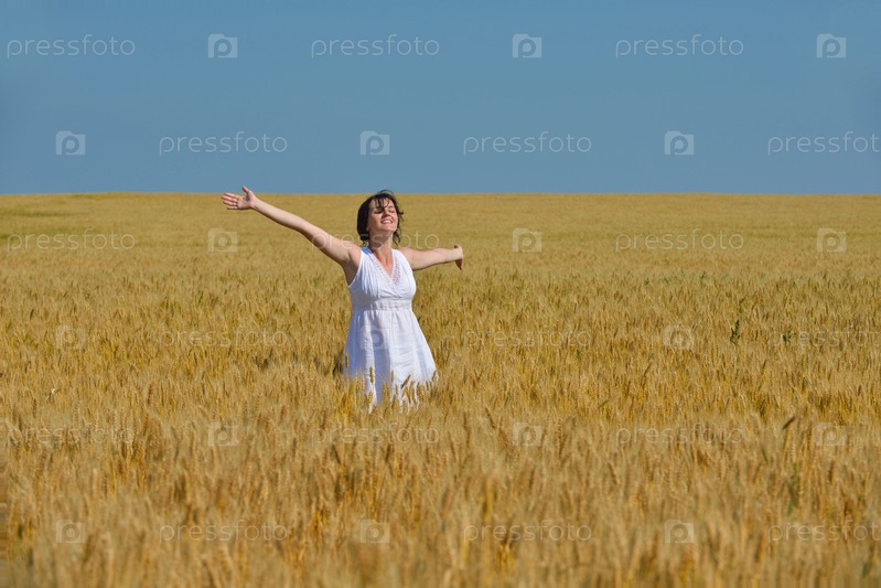 Молодая женщина на пшеничном поле летом